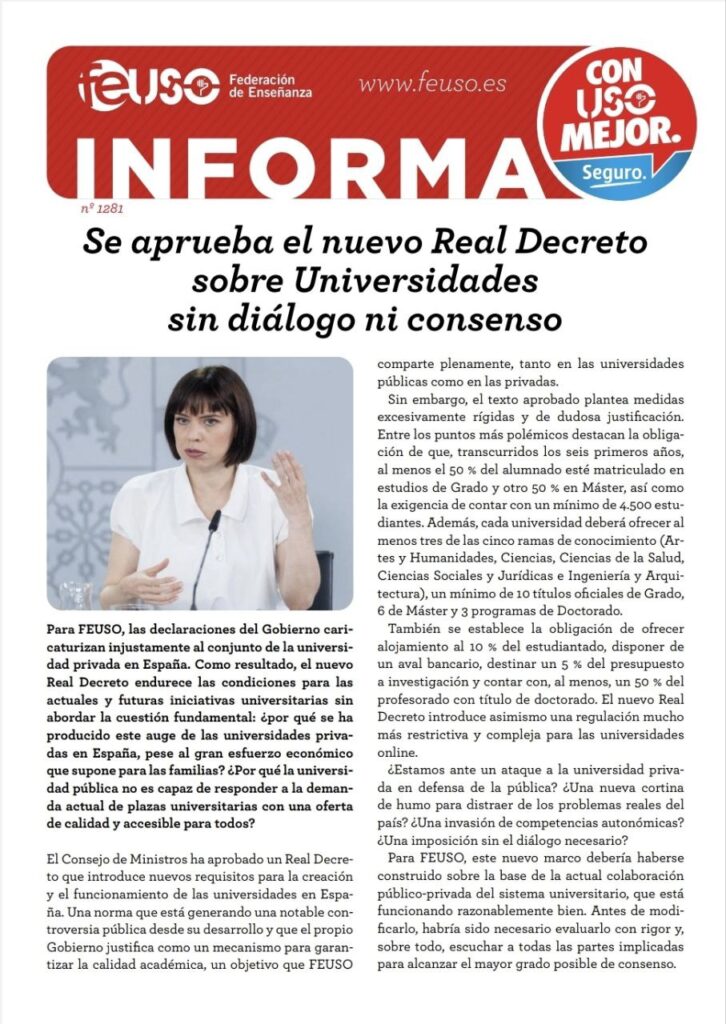 Se aprueba el nuevo Real Decreto sobre Universidades sin diálogo ni consenso. / FEUSO informa / Por feusocv Universidades