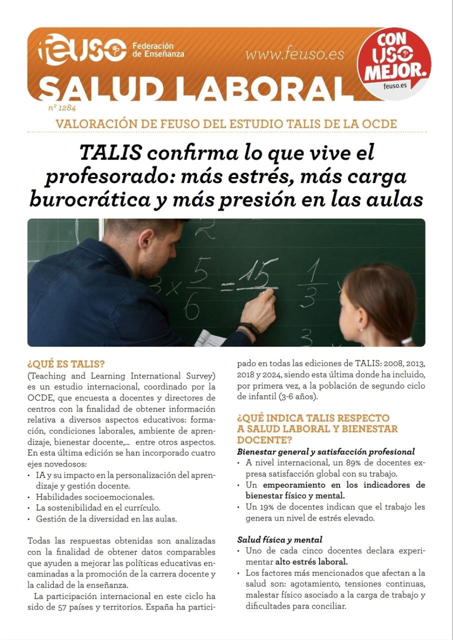 Salud laboral TALIS confirma lo que vive el profesorado: más estrés, más carga burocrática y más presión en las autas 9 de enero de 2026