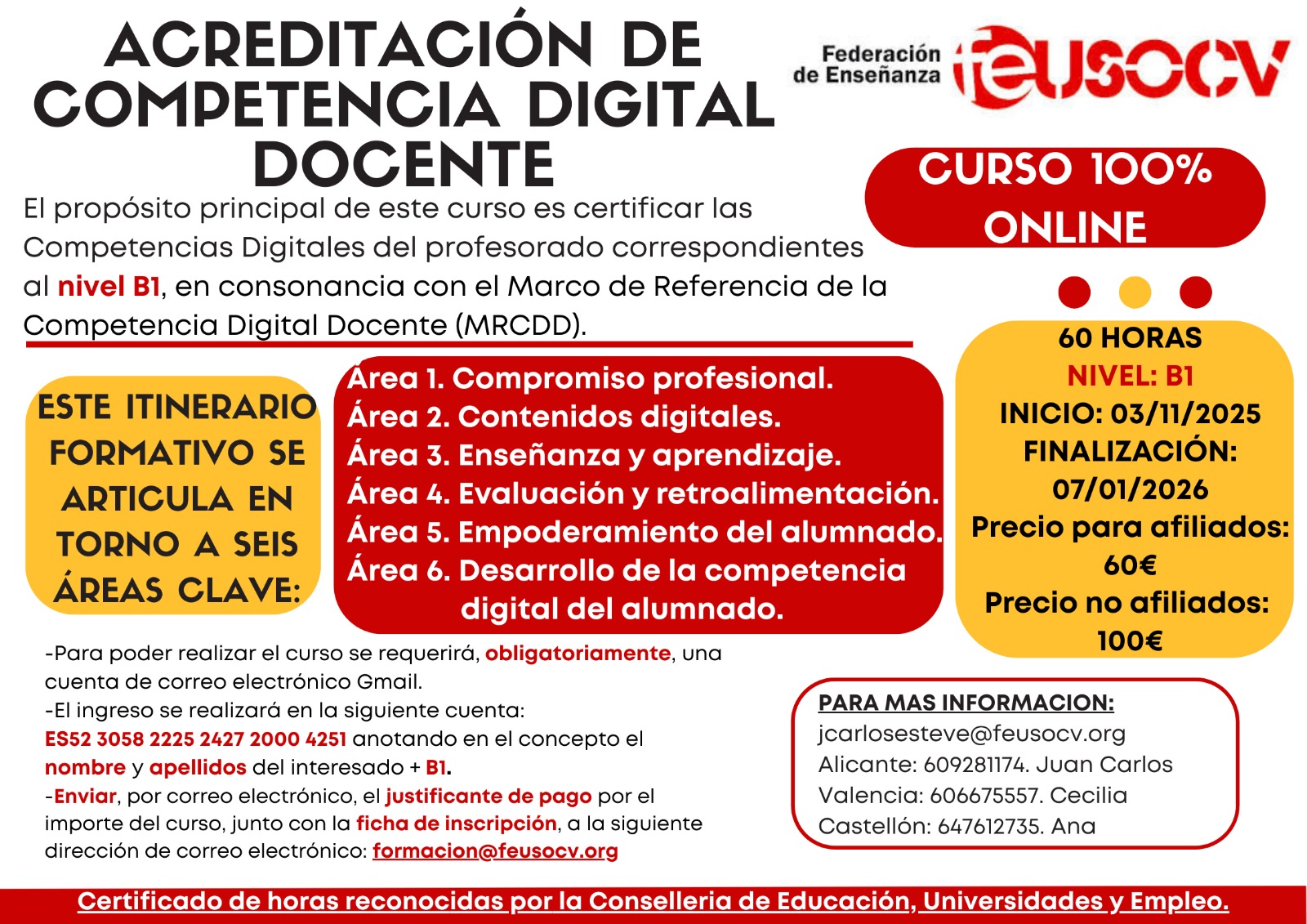 Novedades Novedades Pública CURSO CDD B1. CERTIFICADO POR CONSELLERIA DE EDUCACIÓN 18 de septiembre de 2025 Novedades Pública CALOR EXTREMO EN LAS AULAS 18 de septiembre de 2025 Novedades Religión ELECCIONES USOCV RELIGIÓN VALENCIA 2025 28 de agosto de 2025 Novedades Pública Permiso por nacimiento/adopción y cuidado de hijo/hija. 1 de agosto de 2025 Novedades Religión ASAMBLEA USOCV SOBRE LA PLANTILLA Y FORMACIÓN 17 de diciembre de 2024 Enseñanza pública CURSOS ONLINE DE COMPETENCIA DIGITAL DOCENTE A1, A2, B1 Y B2 16 de julio de 2024 Novedades Pública PERMISO MATERNIDAD PARA LA MADRE BIOLÓGICA ART. 9 Y ART. 49.a TREBEP 7 de marzo de 2024 Novedades Pública ART.18 PERMISO POR ACCIDENTE, ENFERMEDAD GRAVE, HOSPITALIZACIÓN O INTERVENCIÓN QUIRURGICA SIN HOSPITALIZACIÓN 12 de febrero de 2024 Novedades Religión FEUSOCV gana las elecciones sindicales del Profesorado de Religión de Alicante 10 de mayo de 2023 Novedades Religión Propuestas USOCV al borrador del Decreto de Primaria 2 de abril de 2022 Legislacion Adjudicaciones inicio curso Novedades Dificil cobertura Permisos y licencias Mutuas Comunicados a afiliados Nóminas